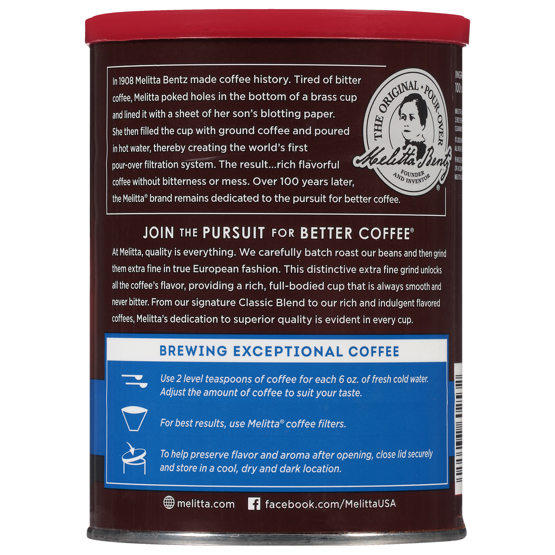 We start with premium coffee beans from farms located in prime coffee-producing regions provide us with our distinctive gourmet beans. We batch roast our beans and then grind them extra fine in true European fashion. This distinctive fine grind unlocks the coffee's full flavor, providing a rich full-bodied cup that is always smooth and never bitter. Melitta premium coffee's unique quality is alive and bold in every sip.