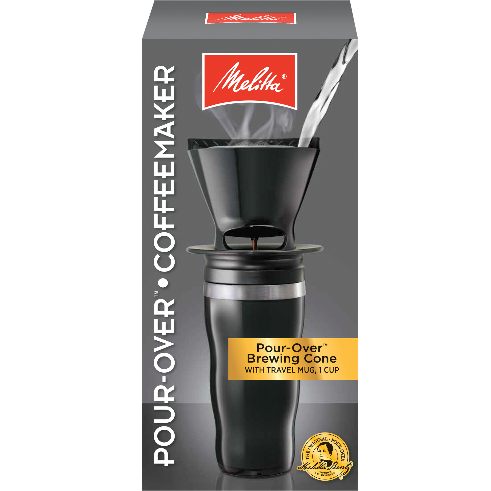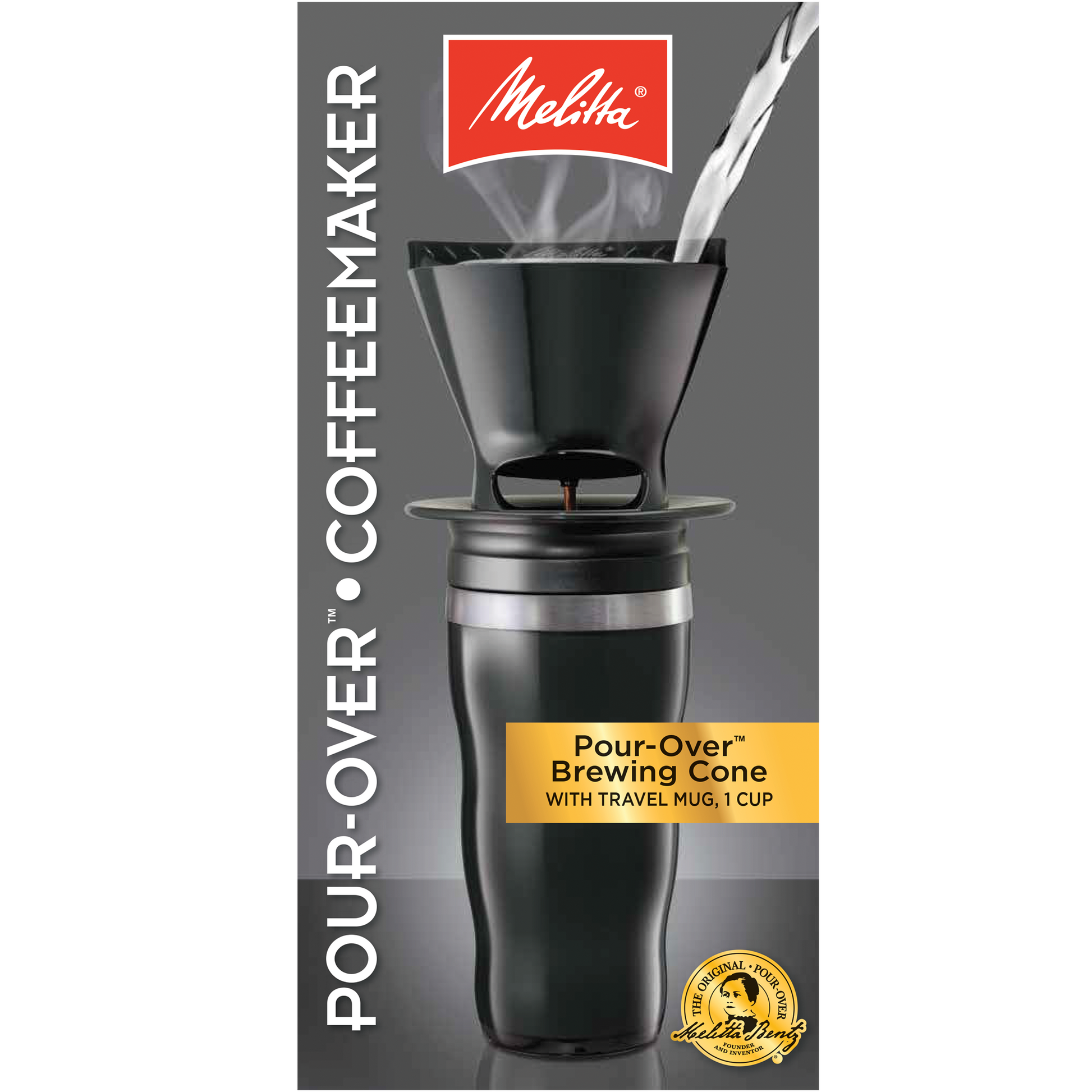 1-Cup Pour-Over Coffee Brew Cone & Travel Mug Set - Black