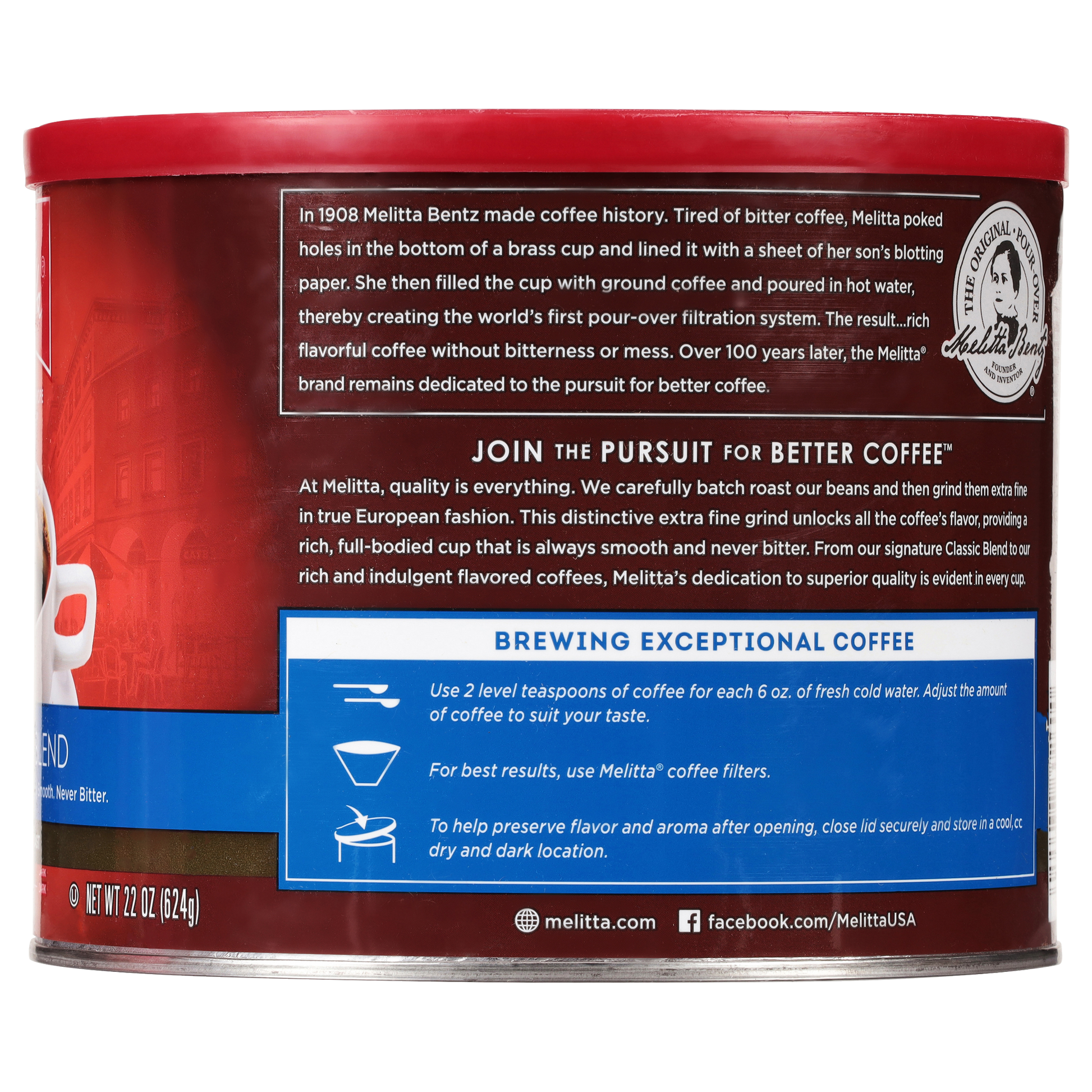 We start with premium coffee beans from farms located in prime coffee-producing regions provide us with our distinctive gourmet beans. We batch roast our beans and then grind them extra fine in true European fashion. This distinctive fine grind unlocks the coffee's full flavor, providing a rich full-bodied cup that is always smooth and never bitter. Melitta premium coffee's unique quality is alive and bold in every sip.