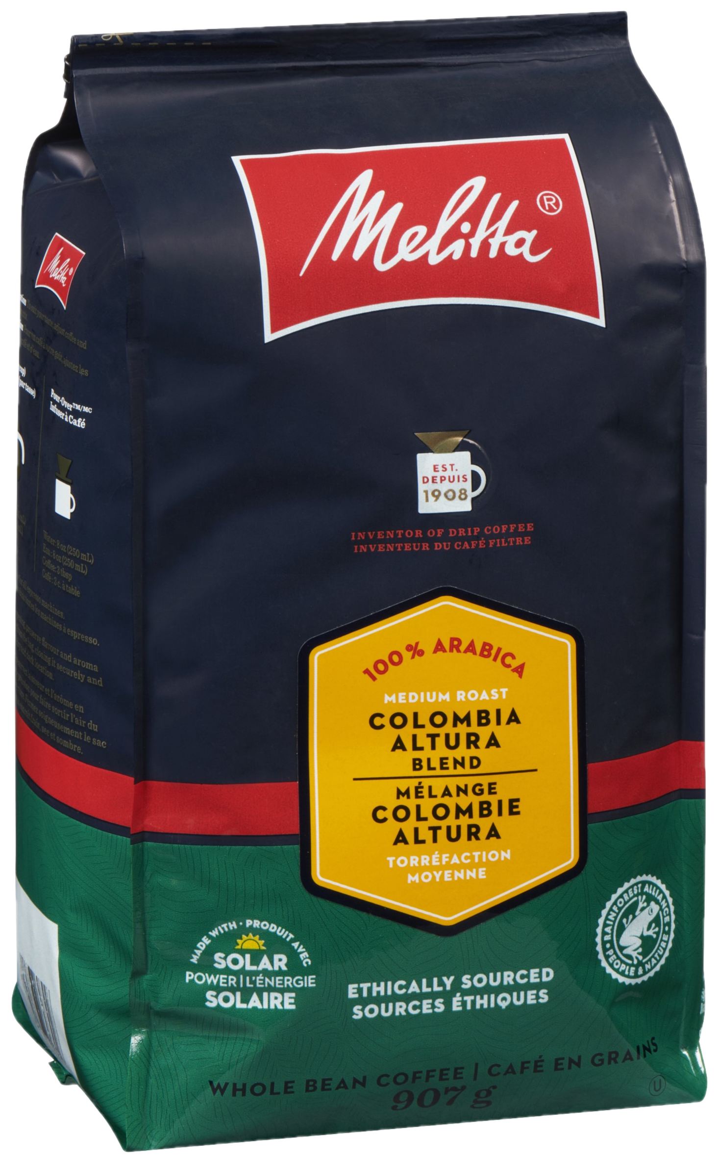 Melitta’s Colombia Altura Blend whole bean coffee is made from 100% Arabica beans blended from some of the finest growing regions in South, Central America and Africa. And now sustainably sourced from Rainforest Alliance Certified farms.