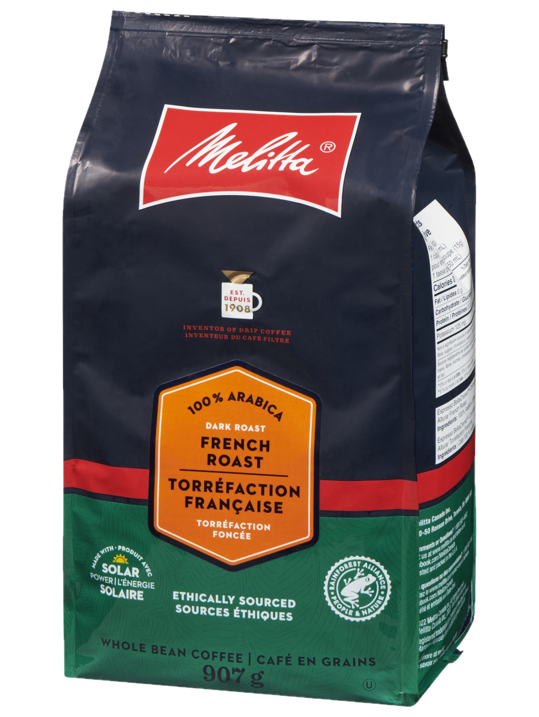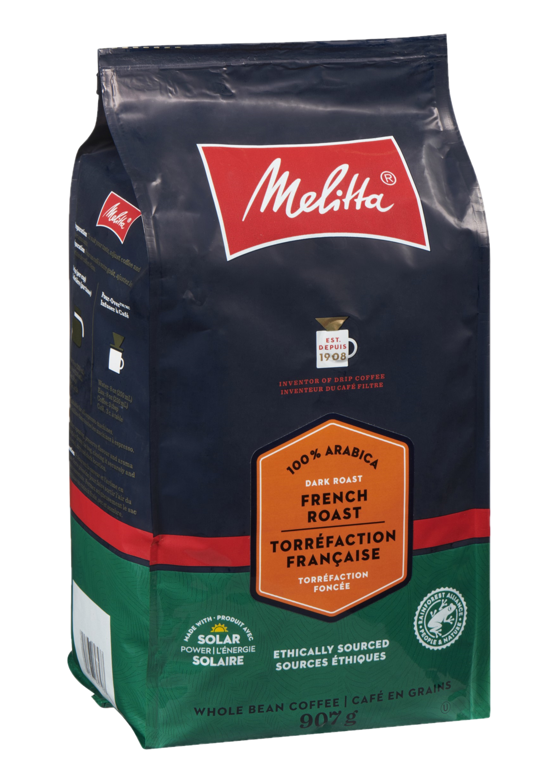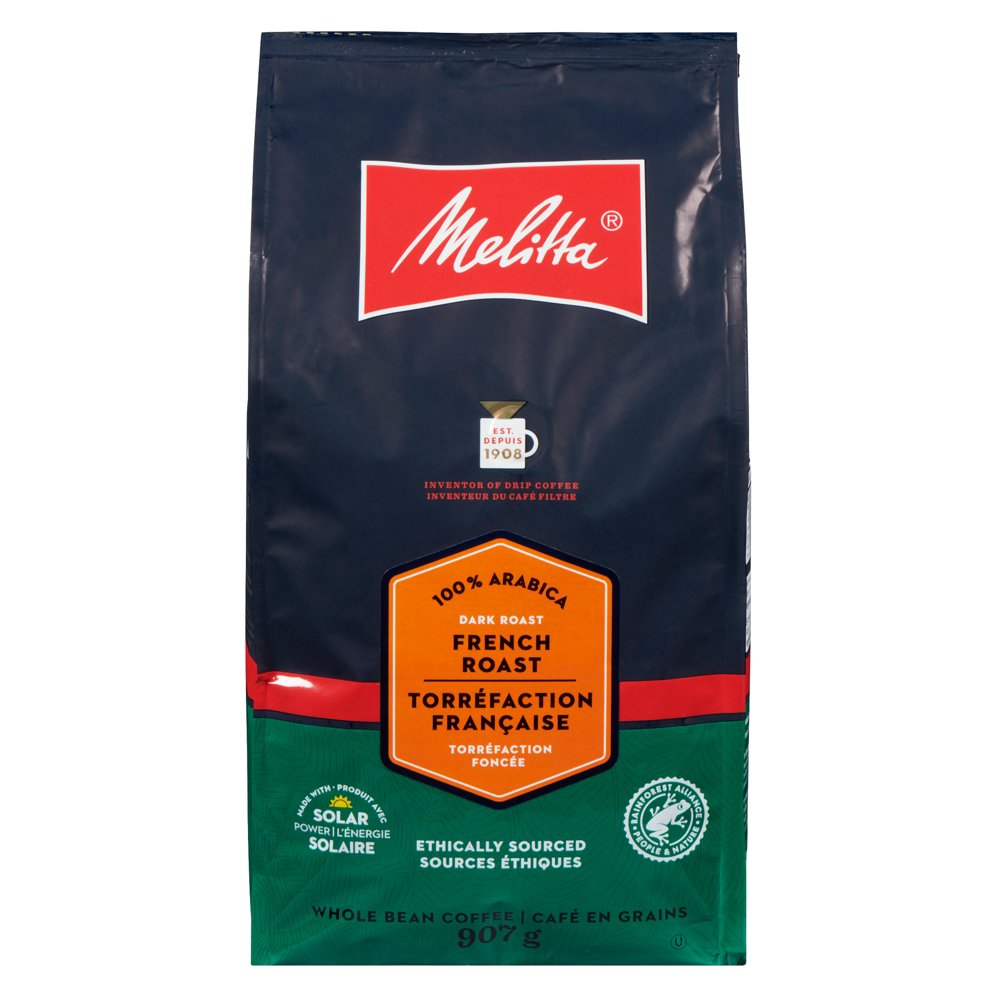 When you're craving a deep intense flavored coffee, turn to Melitta® French Roast. Reminiscent of Parisian cafés, let the world go by and enjoy its enticing aroma and smooth, intense taste. And now roasted with whole beans sustainably sourced from Rainforest Alliance Certified farms.