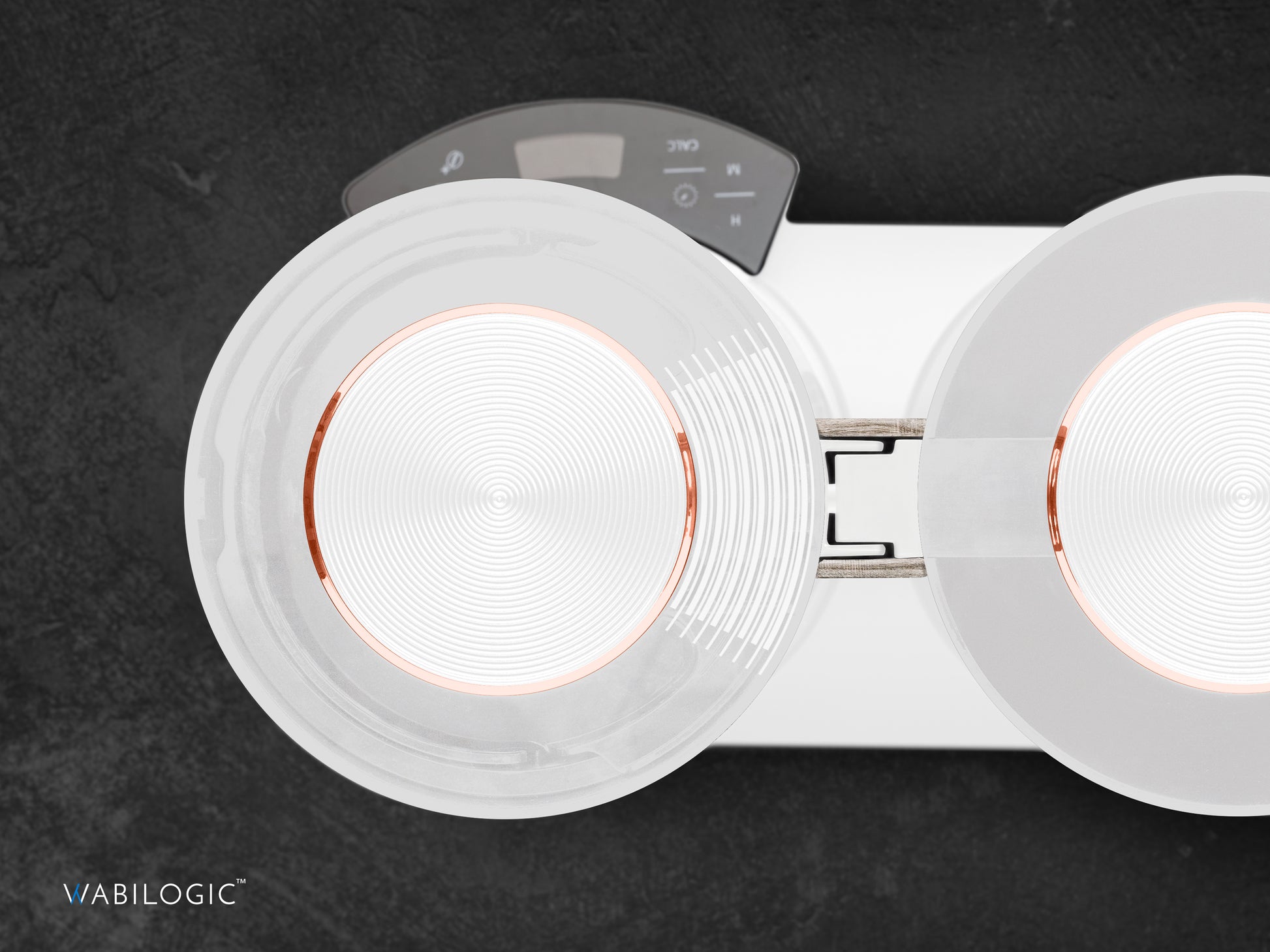 are everywhere on this unique machine; the spun texture on the glass lid knobs, the woodgrain accent