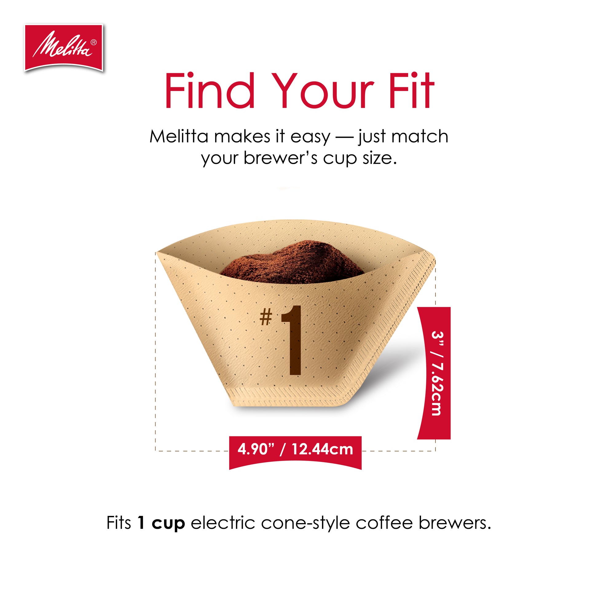 Melitta #1 Cone Coffee Filters fit all 1 Cup Non-Electric Cone Coffeemakers